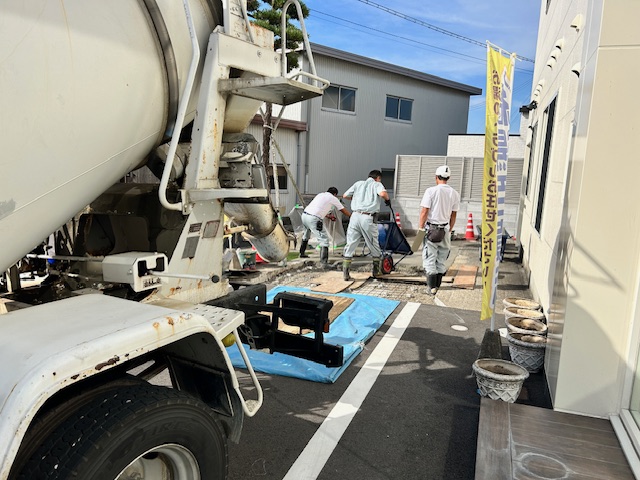 今日は現場で生コンクリート打ち。