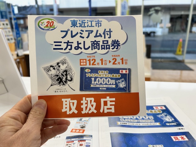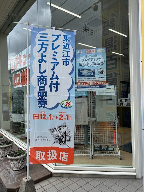 平井百貨店は、「東近江市プレミアム付三方よし商品券」の取扱店です。