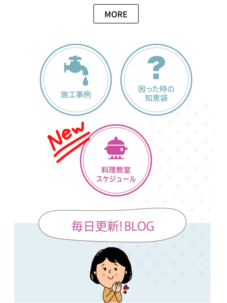 ホームページをスクロールしていくと、新しく 「料理教室スケジュール」 のアイコンができました。