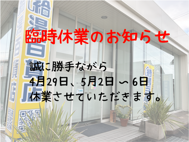 当店も4月29日、5月2日~6日まで臨時休業させていただきます。