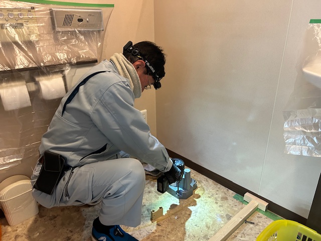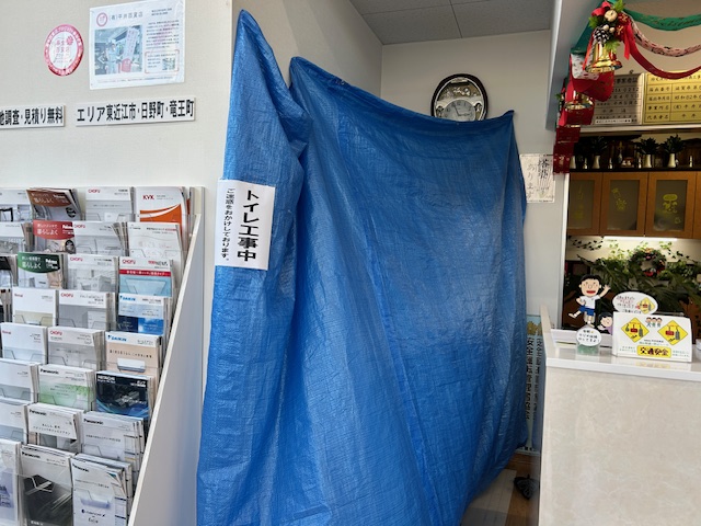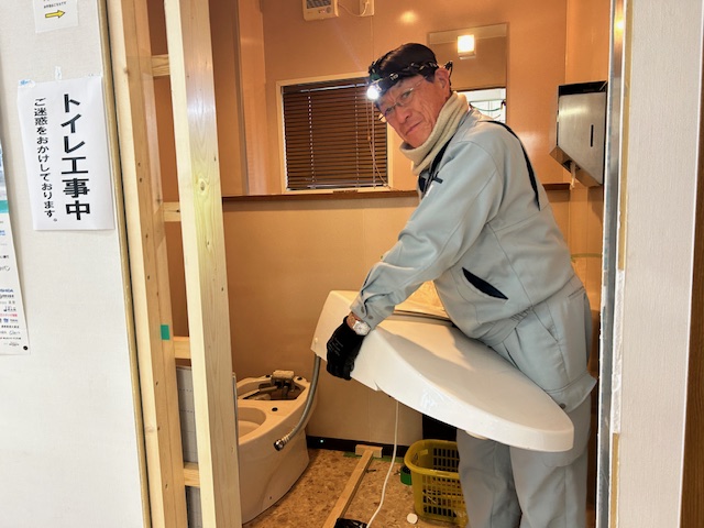 只今、店内のトイレの改装工事中です。