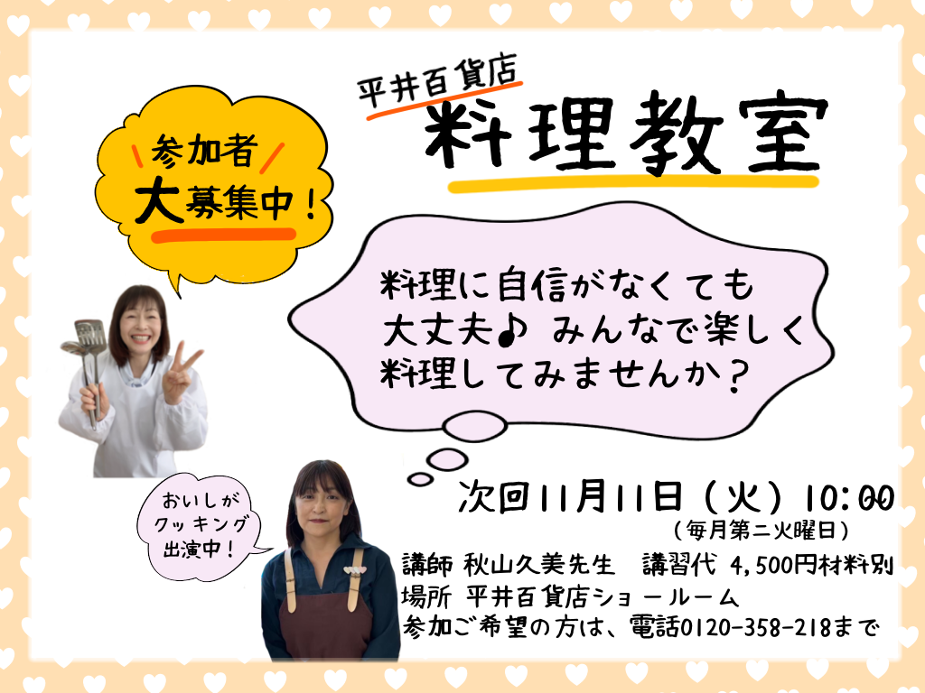 昨日、次回11月の料理教室のご予約のご連絡をいただきました!