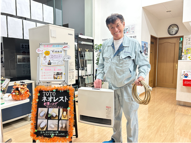 平井百貨店ではガスファンヒーター+ホース+ソケット+設置まで全てがセットで月々レンタル500円(税込)です。(当社ガスユーザーさまのみ)