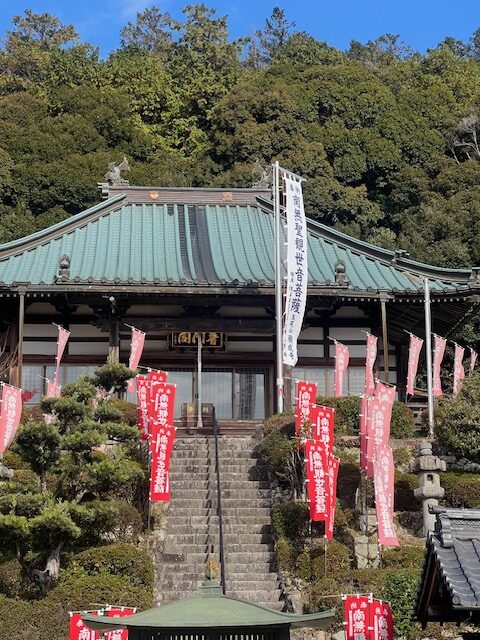 いつもお世話になっている観音様に、**「南無聖観世音菩薩」**と書かれたのぼりを奉納させていただきました。