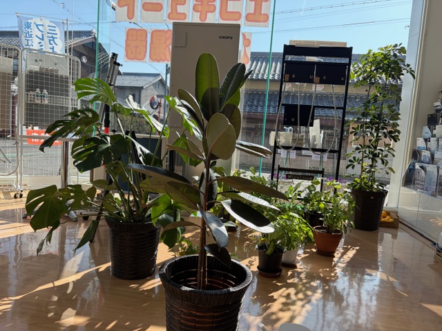 いつもはそれぞれの場所で静かに過ごしている植物たちも、光の当たる場所に並べると、なんだかうれしそうに見えます。
