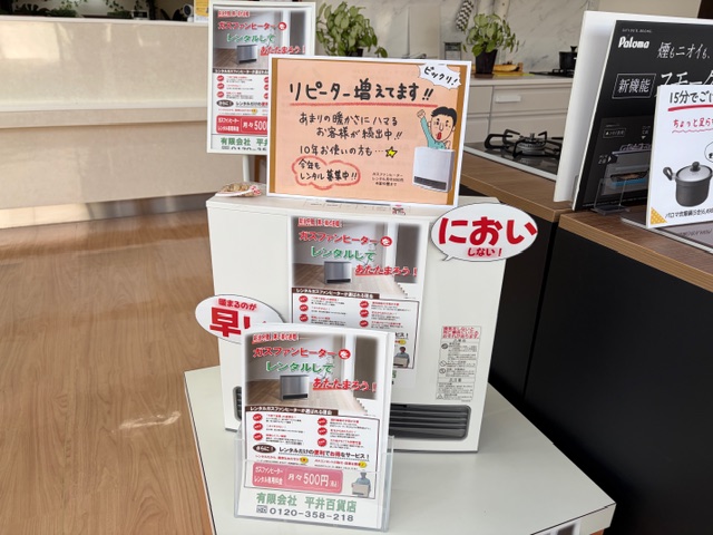 まだまだ大活躍のレンタルガスファンヒーターもPOPでいい感じになりました