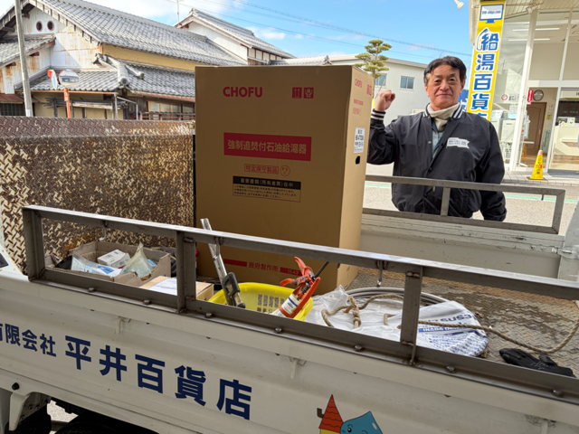 石油給湯器の交換工事に出発するトオル社長です。