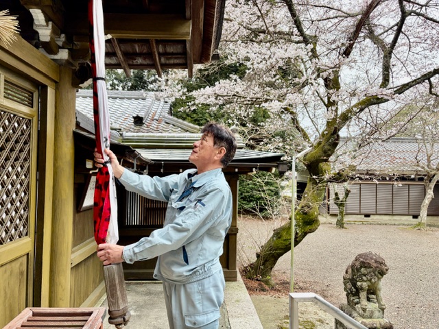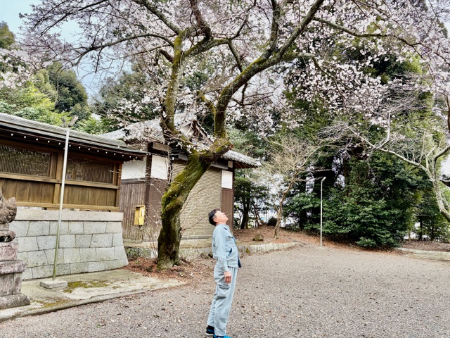 境内の桜が満開で、朝から感激のトオル社長です。