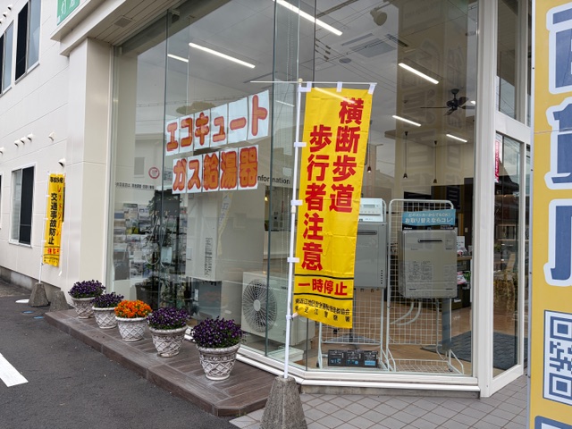 今年も店の入口に【交通安全ののぼり旗】を立てました。
