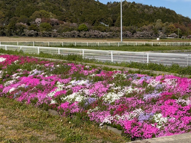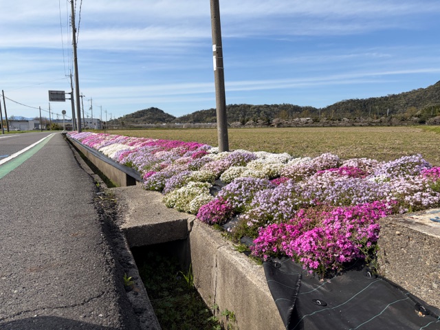 近くのコンビニの前に芝桜が咲いているよ!
